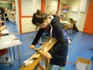 Каждый будний день в учебный корпус Инари нас возит на машине один из преподавателей и так же привозит. Расстояние между Инари и Ивало 40км. Завтракаем в 7.30, обед в 11.45 и ужинаем в хостеле Ивало с 16.00-17.00. А в субботу и воскресенье отдыхаем. Здесь очень интересные предметы, я занимаюсь разработкой и изготовлением различных изделий из кожи и меха оленя, так же самостоятельно занимаюсь живописью и рисунком в арт-мастерской. Сшила из кожи национальную саамскую сумочку и кошелек, а в данное время обрабатываю шкуру оленя, для того, чтобы сшить финские «унты» с таким закрученным носиком. Саша же работает с костью и рогом оленя, делает различные ножи и украшения.