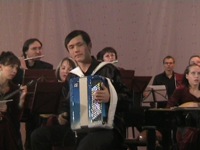 Одним из ярких выступлений вечера также стало исполнение Концерта в трех частях для бандонеона с оркестром «Посвящение Пьяццолле» А. Зубицкого. Бандонеон – клавишно-пневматический инструмент типа кнопочного аккордеона, созданный ещё в первой половине XIX века. В ХХ веке он стал излюбленным инструментом аргентинцев, где ныне считается национальным. В исполнении лауреата международных конкурсов, преподавателя института Владимира Боярского зрители смогли познакомиться с необычным тембром инструмента и услышать какими большими выразительными и техническими возможностями он обладает.