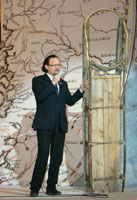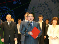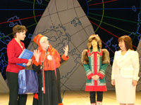 Затем слово предоставили первому ректору АГИИК, министру культуры и духовного развития республики Андрею БОРИСОВУ. Он первым делом подошел к реквизиту – северной нарте возле сцены, глубокомысленно прикоснулся к ней и сообщил, что еще в 1984 году он привез ее из юкагирского села Андрюшкино Нижнеколымского района. И тут раздались аплодисменты с доброжелательным смехом. Затем министр выразил удивление, что институт возник так быстро, хотя северная цивилизация так давно его ждала. И вспомнил, что институт начинался в маленькой комнатке в Саха театре. Затем было здание, затем – «птица АГИИК», которая ему очень нравится, а сейчас его студенты и вовсе добрались до «Золотой маски». А скоро будет и общежитие. «Мечтайте! Любите! Верьте! Надейтесь! Уруй!», - провозгласил Борисов. А зал ему ответил: «Айхал!». А ректор АГИИК Саргылана Семеновна в знак высшей признательности вручила своему предшественнику подарок.